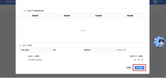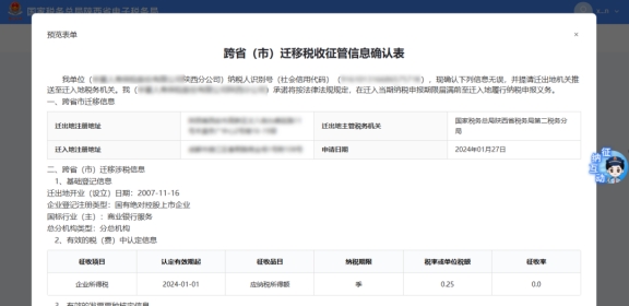 系統彈出預覽表單界面,展示“跨省(市)遷移稅收征管信息確認表”,點擊【我已確定】。