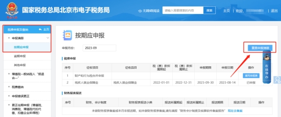 二、稅費申報及繳納—申報清冊—按期應申報頁面點擊“重置申報清冊”,然后進入增值稅申報表內在主表頁面點擊右上角的“重置”,刷新成功后重新填寫申報即可。